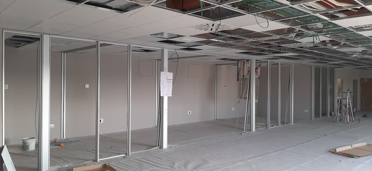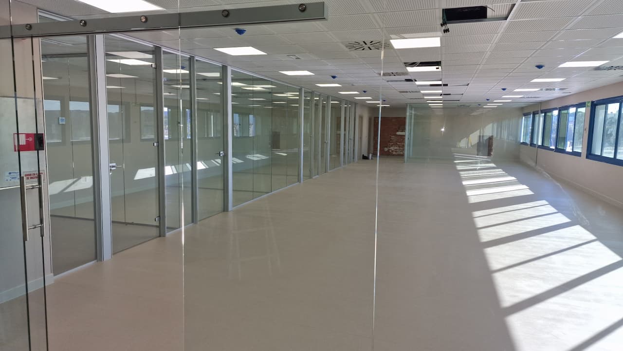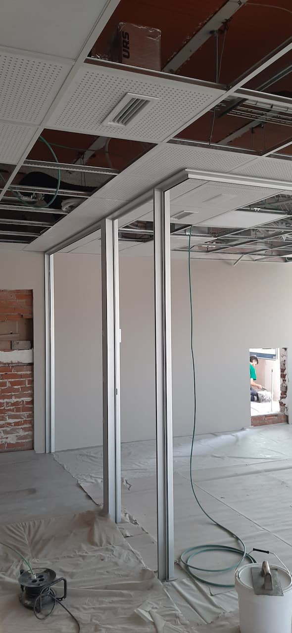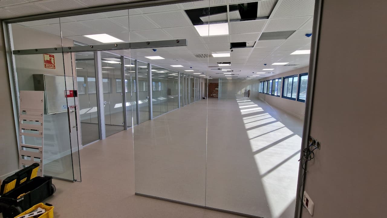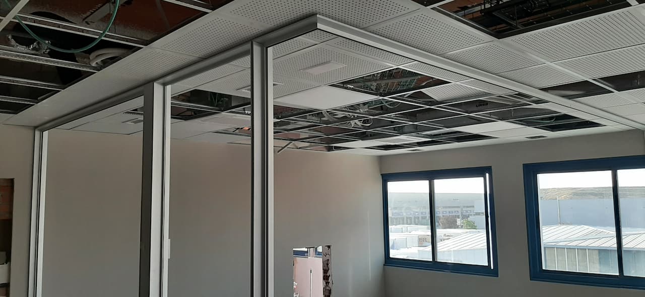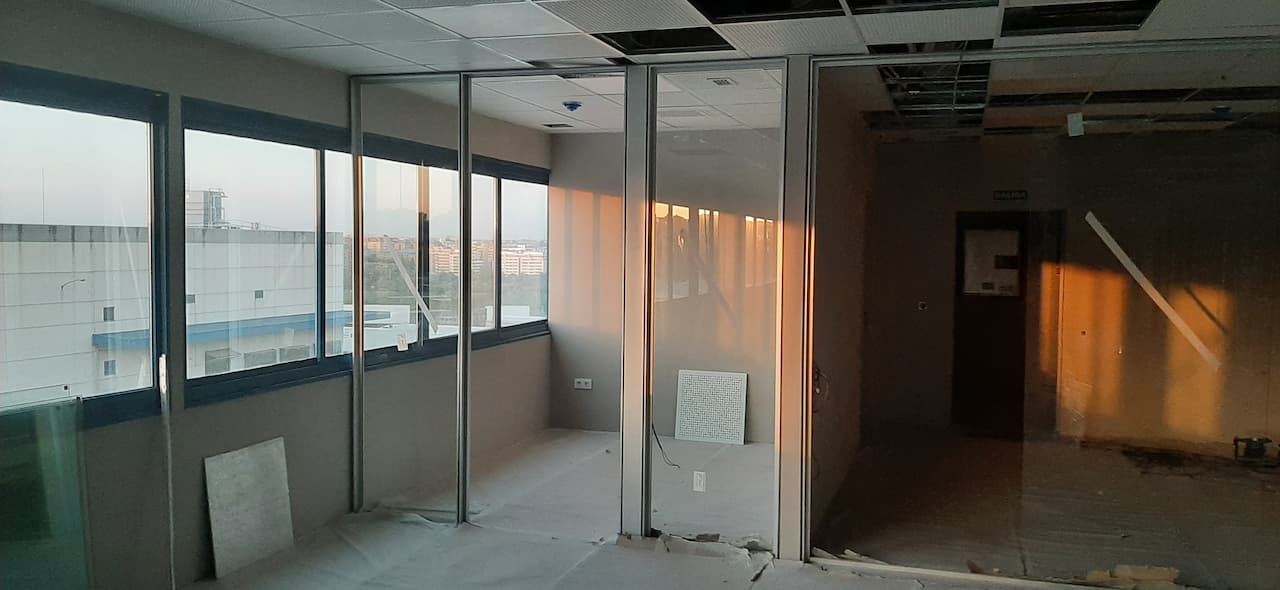 Modalidad: Distribución de espacios mediante mamparas y puerta de paso de vidrio.