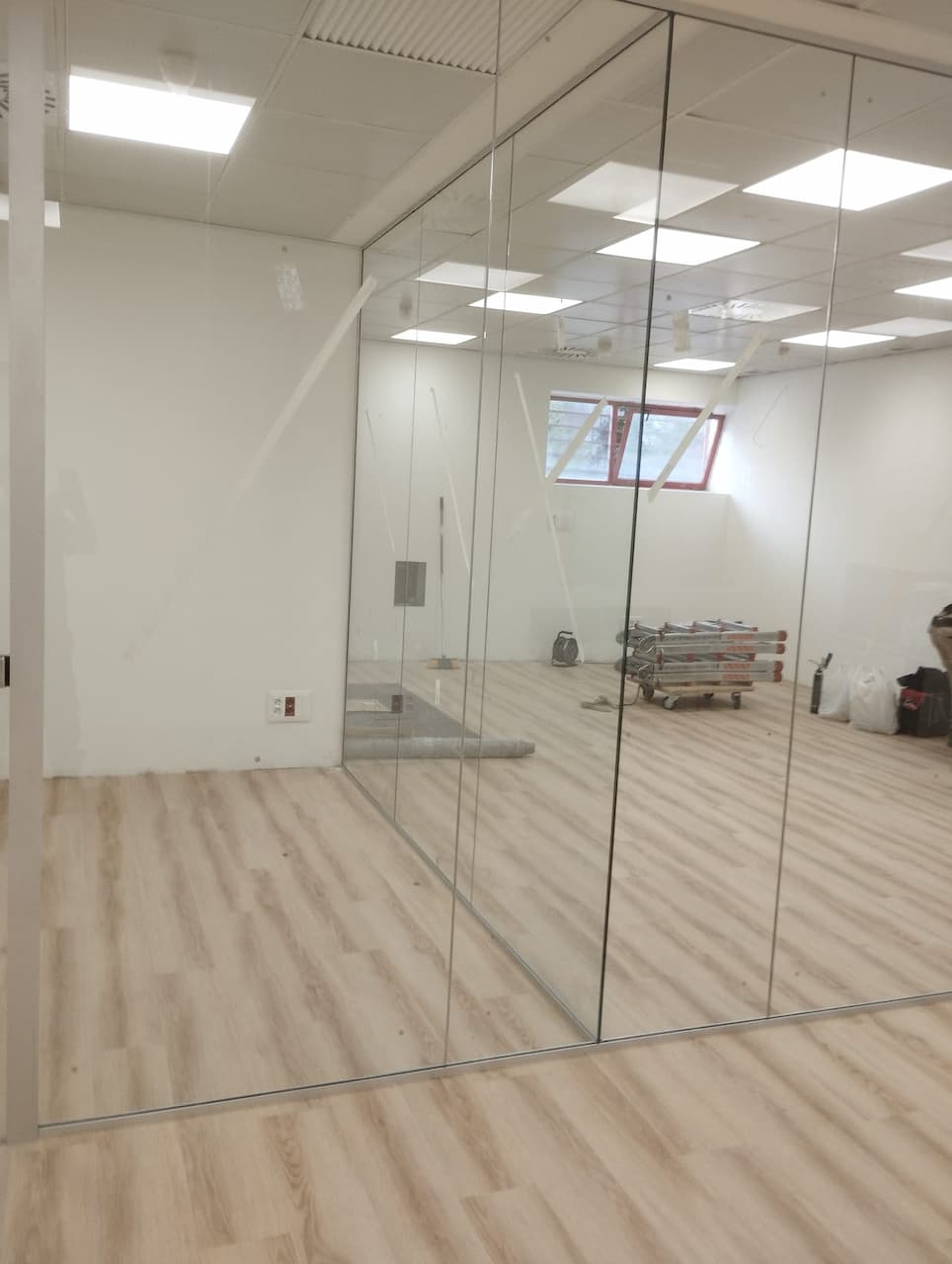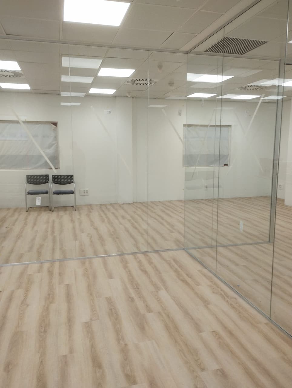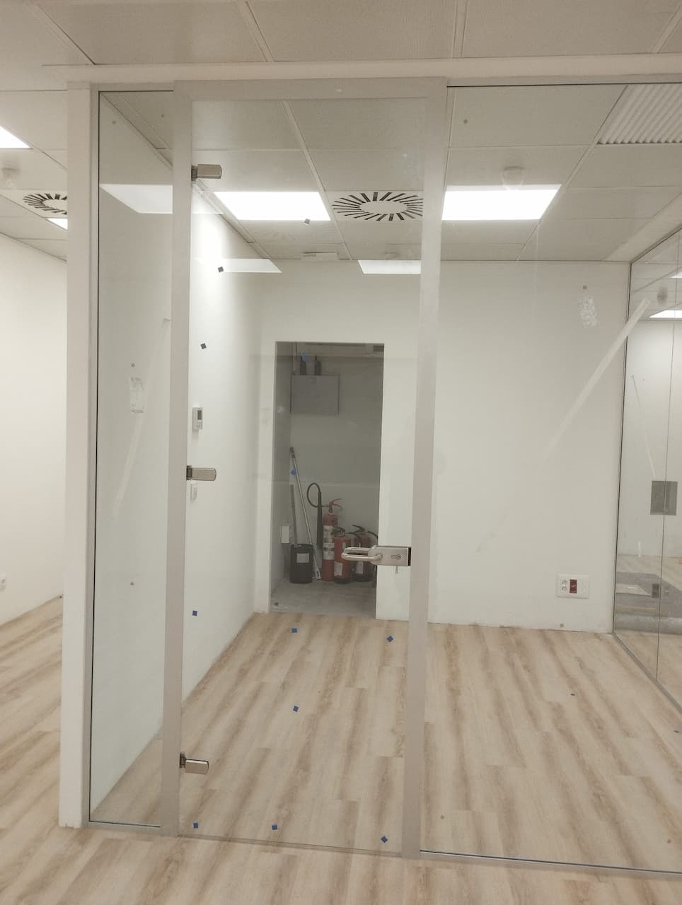 Modalidad: Distribución de espacios mediante mamparas y puertas de paso de vidrio.