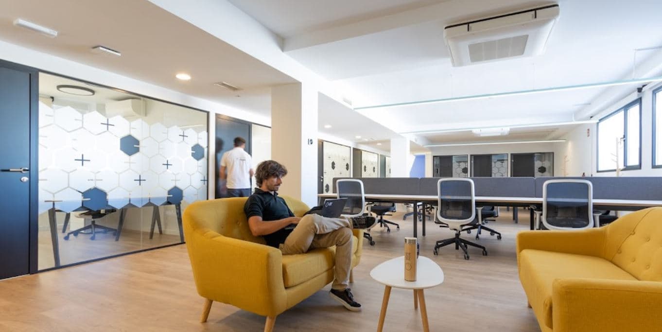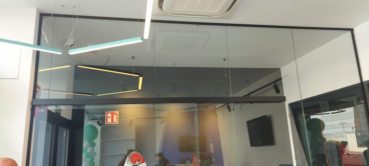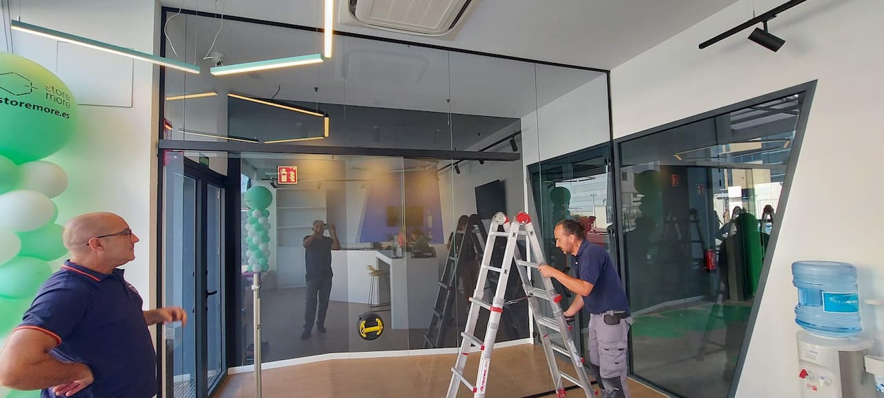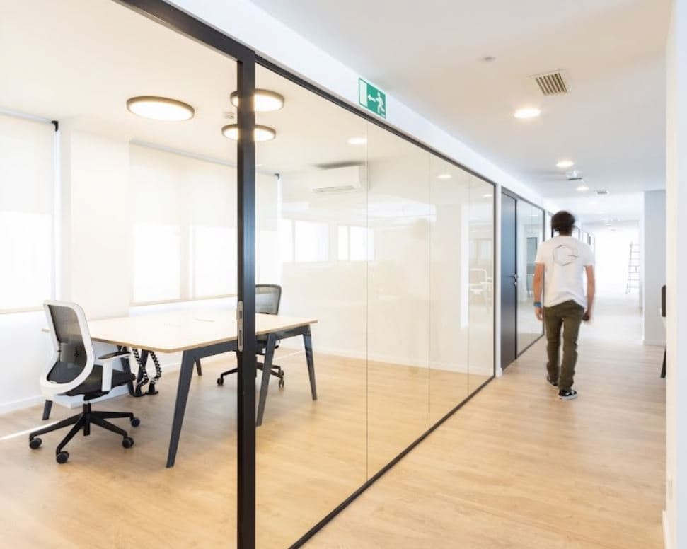 Distribución de espacios mediante mamparas y carpintería.
